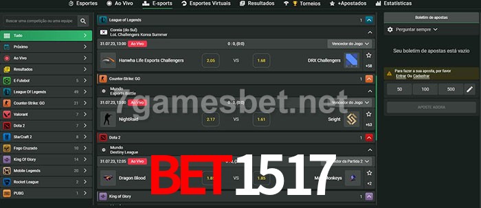 A aposta Bet1517 oferece aos jogadores a experiência mais conveniente de apostas em eSports!